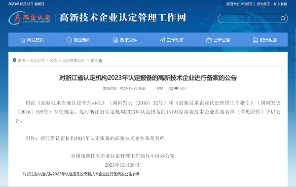 2023年12月28日,全國高新技術(shù)企業(yè)認(rèn)定管理工作領(lǐng)導(dǎo)小組辦公室發(fā)布《對浙江省認(rèn)定機(jī)構(gòu)2023年認(rèn)定報備的高新技術(shù)企業(yè)進(jìn)行備案的公告》,中國能源工程集團(tuán)有限公司(以下簡稱“中國能源工程集團(tuán)”)所屬中清能源(杭州) 有限公司...